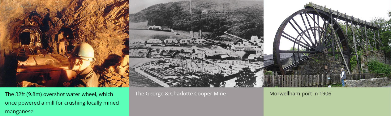 Morwellham Quay was originally set up by the Benedictine monks of Tavistock Abbey, which was founded in 961, to carry goods to and from Plymouth on the River Tamar, since the River Tavy was unnavigable. By the 12th century, tin ore was being transported through the quay, followed by lead and silver ores in the13thcentury. Later, copper deposits were also discovered at the Quay itself and the George and Charlotte Mine opened in the 18th century. In addition, by 1800,manganese deposits were being extracted from the northern and western edges of Dartmoor and being brought to Morwellham.